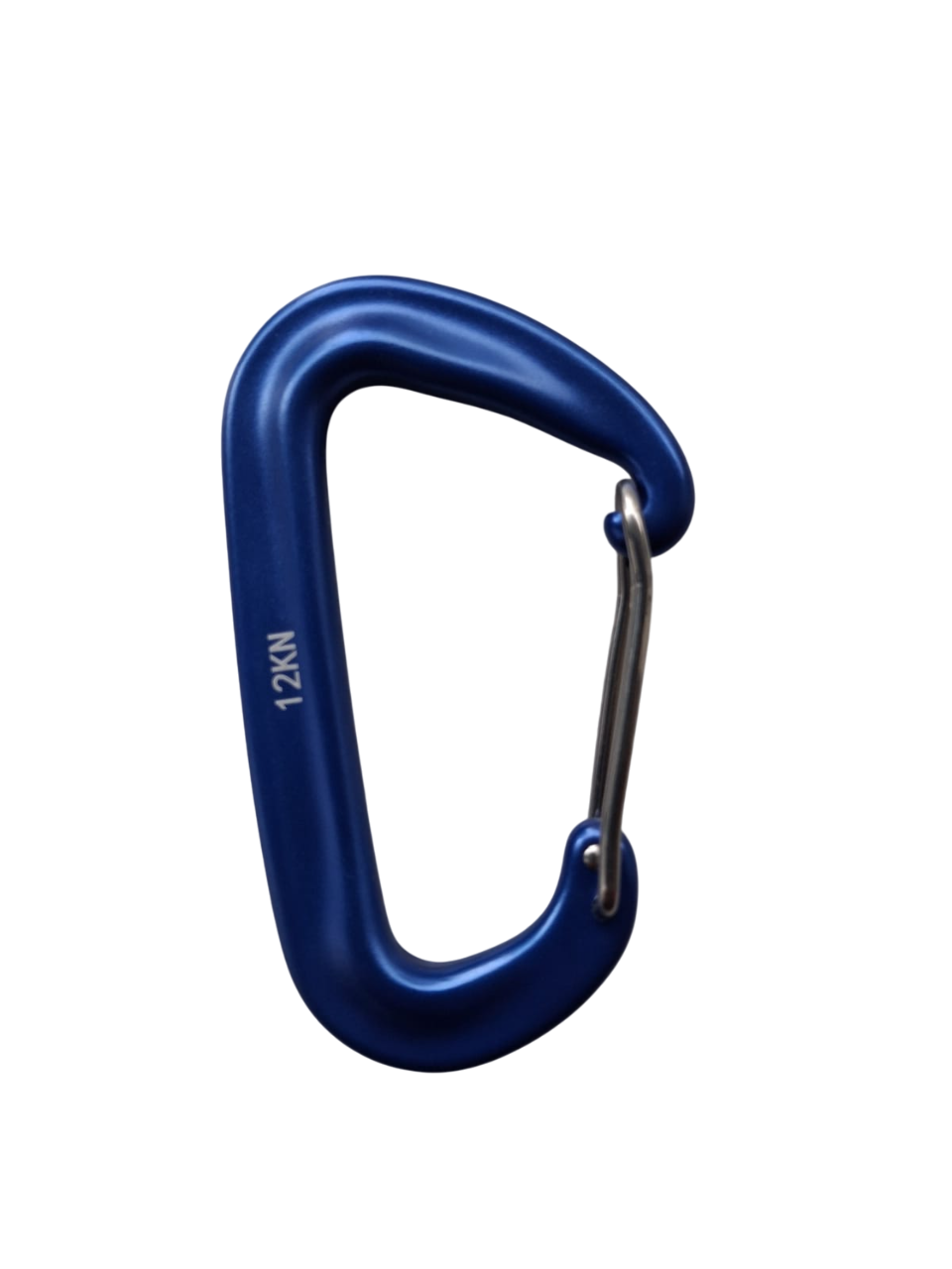 2. Qual é o material de fabricação do mosquetão? O mosquetão é fabricado em liga de alumínio durável.